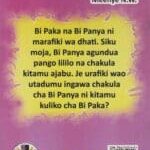 Bi Paka na Bi Panya ni marafiki wa dhati. Siku moja, Bi Panya agundua pango lililo na chakula kitamu ajabu. Je urafiki wao utadumu ingawa chakula cha Bi Panya ni kitamu kuliko cha Bi Paka?