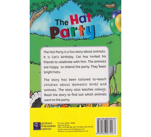 The Hat Party is a fun story about animals. It is Cat’s birthday. Cat has invited his friends to celebrate with him. The animals are happy to attend the party. They Wear bright hats.